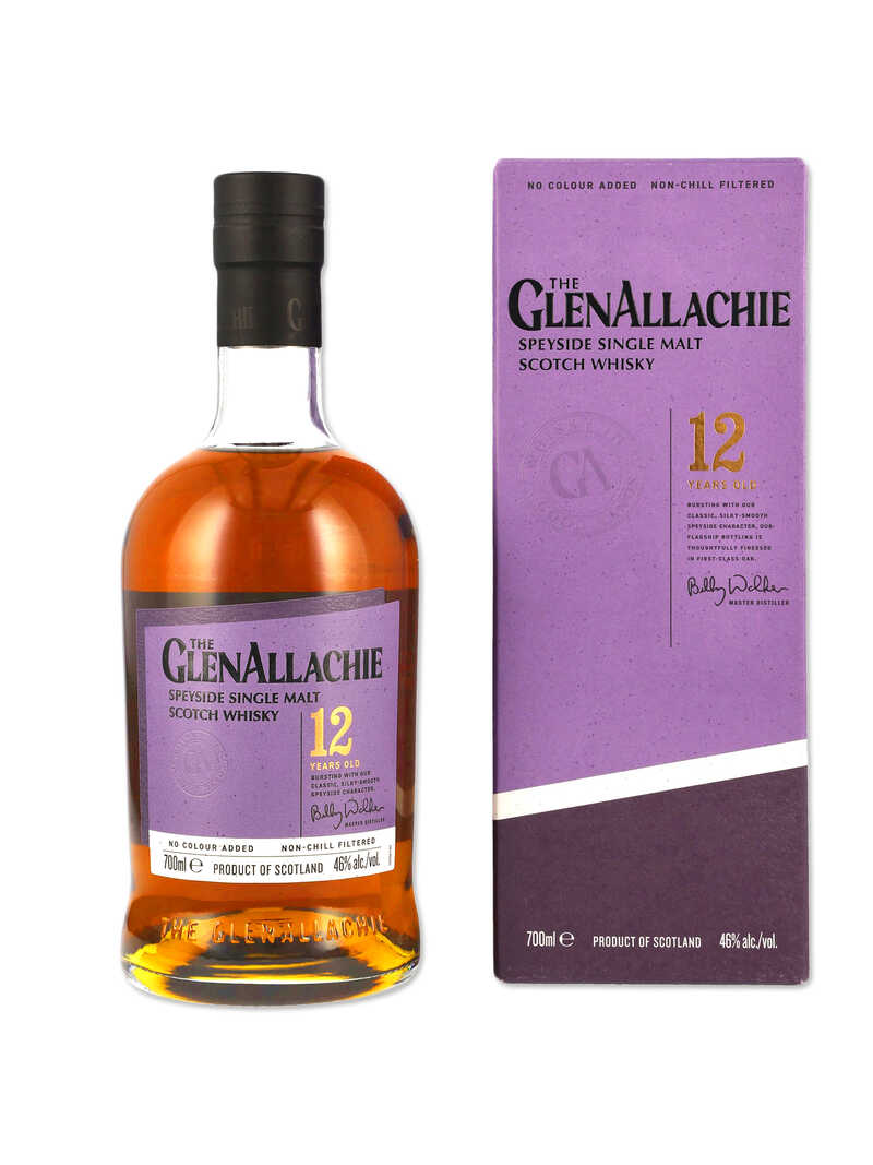 The GlenAllachie steht für herausragenden Single Malt Whisky - völlig frei und unabhängig produziert aus schottischer Hand mit viel Freude und Leidenschaft. Das Trio um die Whisky-Koryphäe Billy Walker blickt zusammengerechnet auf fast 100 Jahre Erfahrung im Whisky-Business zurück. Und das schmeckt man! Der 12-jährige Single Malt Scotch Whisky bildet das Herz der neuen Reihe von The GlenAllachie. Er reift zunächst in ehemaligen Bourbonfässern und abschließend für einige Monate in Sherryfässern (Pedro Ximénez und Oloroso) und neuen unbelegten Eichenfässern. Der bronzefarbene Single Malt duftet nach Butterscotch, Honig und Caffè Mocha. Am Gaumen gesellen sich Aromen von Marzipan, Banane und Rosinen hinzu. Abgefüllt in Trinkstärke mit 46 % Vol., weder kühlfiltriert noch gefärbt! Der reine Genuss! 0,7-Liter-Flasche.