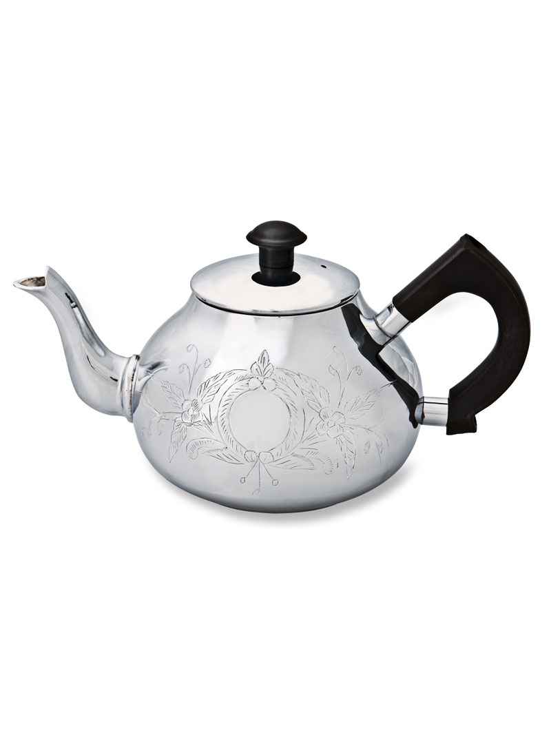 Diese Teekanne ist einfach herrlich anzuschauen und 'very British'. Sie ist komplett aus lebensmittelechtem Edelstahl gefertigt und von außen verchromt. Die klassische Form wird abgerundet mit einer feinen Gravur und den typischen schwarzen Griffen aus einem nicht wärmeleitenden Kunststoff. Der Deckel ist abnehmbar. Hervorragend geeignet zum stilvollen Servieren eines guten Tees! Für 0,7 Liter, entspricht 4 Tassen.