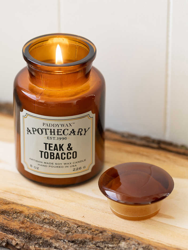 Wunderschöne Duftkerze im 'Apothecary'-Glas - Teak & Tobacco