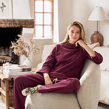 Leichte Jerseypyjamas und Nachthemden mit filigranen Blumenmustern aus hautfreundlicher Baumwolle erwarten Sie hier. Bonsoir of London und Mayfair legen größten Wert auf Qualität der langlebigen Naturfasern. Die englischen Designs reichen von klassischen Paisleys und Tartans über Blumen bis hin zu modernen grafischen Mustern. Und für das gemütliche Wochenende gibt es die bequeme Loungewear von Charles Robertson.
