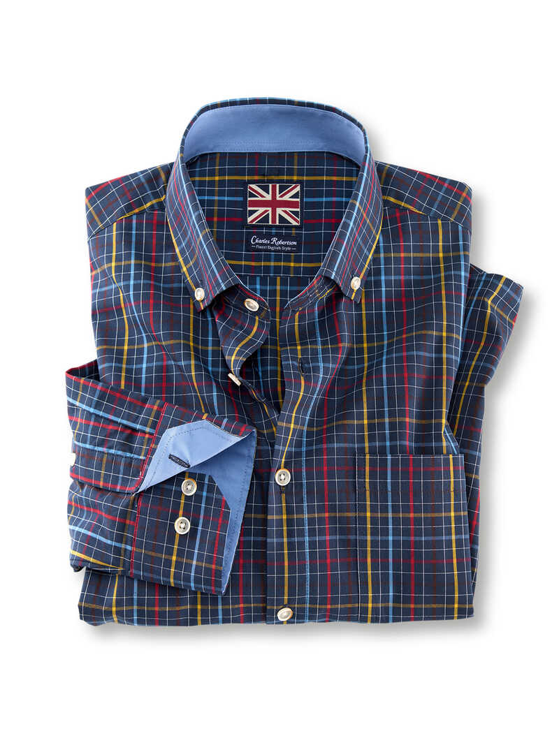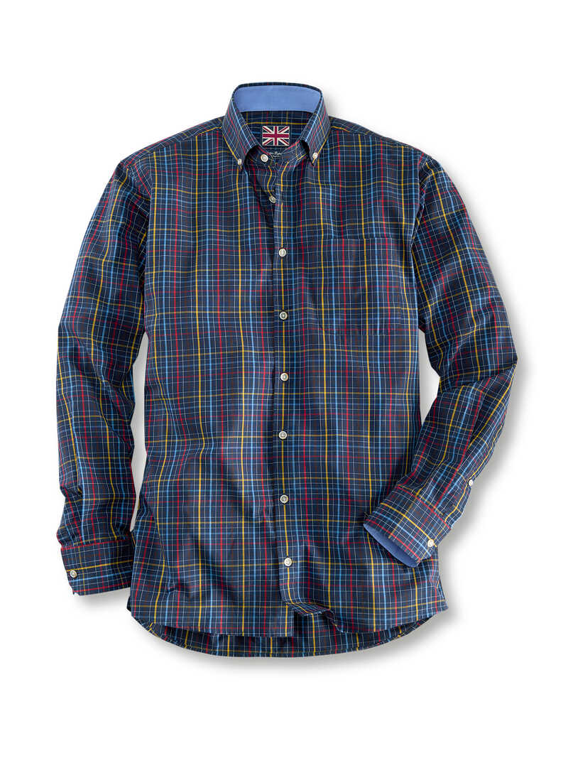 Dieses Karohemd bringt Abwechslung in den Kleiderschrank! Auf seinem intensiven Dunkelblau kommt das Überkaro in kräftigem Rot, Gelb und Blau fantastisch zur Geltung. Die Stoffqualität stehtdem in Nichts nach, so trägt sich das Baumwollgewebe wunderbar angenehm auf der Haut. Unifarbene, blaue Besätze am Innenkragen und in den verstellbaren Manschetten vervollkommnen den Look.Mit 'Button Down'-Kragen, einer Brusttasche und gerundetem Saum. Dank seines Multicolor-Dessins ist dieses Hemd einfach unschlagbar zu kombinieren! Bequeme Passform (Comfort Fit). Länge ca. 82 cm. Farbe: Multicolor. Original Charles Robertson.