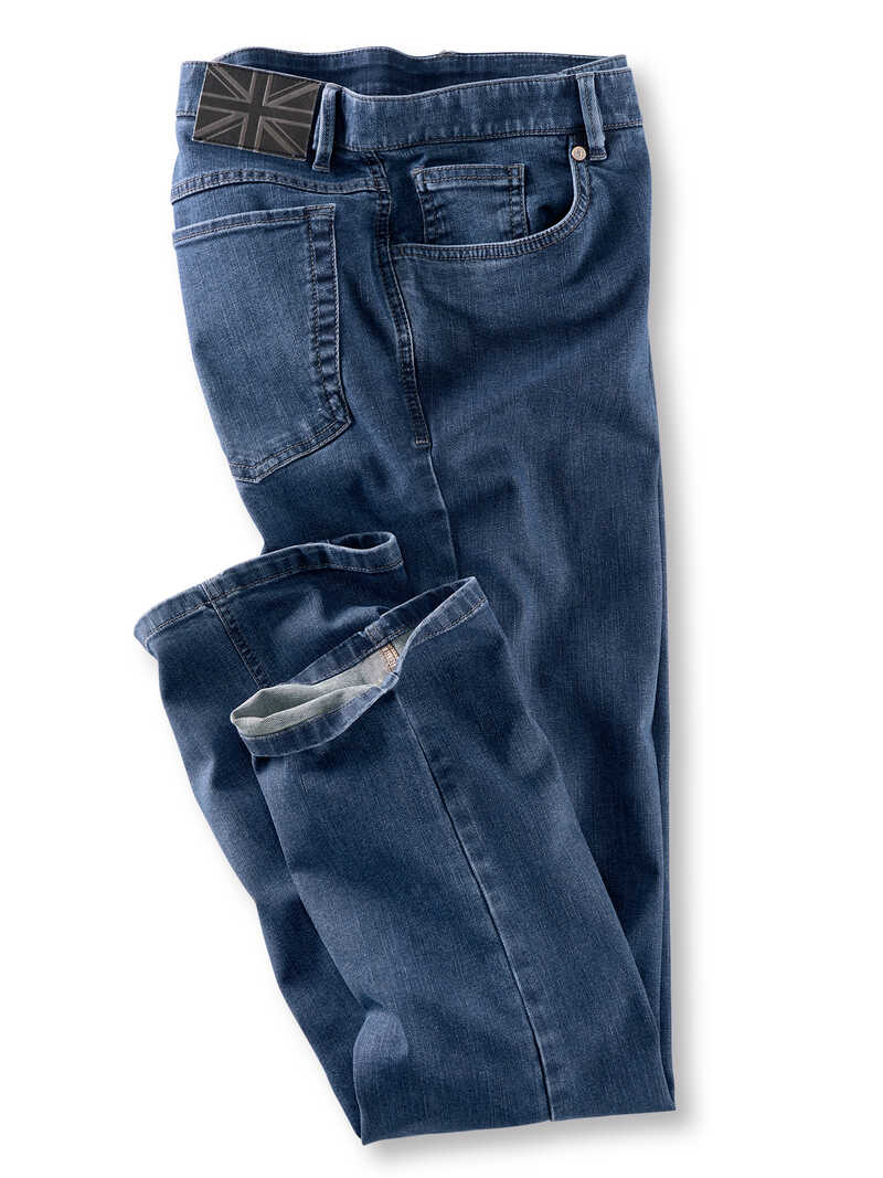 Eine Jeans fürs ganze Jahr! Weil sie den perfekten Blauton mit leichten Wascheffekten hat und natürlich den beliebtesten aller Hosenstoffe: Blue Denim. Die Vorteile dieses Stoffes liegen auf der Hand: Er ist unempfindlich, bequem, vielseitig und leicht zu kombinieren. Diese Jeans ist durch ihren 2 % Elasthananteil auch superflexibel in jeder Bewegung. In hochwertiger Heritage Ausstattung: Five-Pocket-Form mit zwei Eingrifftaschen, einer Münztasche, zwei aufgesetzten Gesäßtaschen, Bund mit Gürtelschlaufen und einem Lederlabel in Union Jack-Optik. Diese Jeans passt immer und überall! Normale Passform (Regular Fit). Fußweite ca. 40 cm. Farbe: denimblue. Original Hiltl Heritage.
