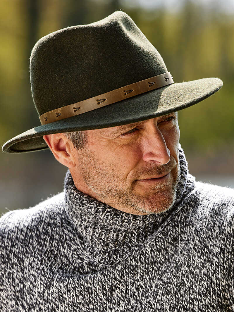 Im Country-Design präsentiert sich dieser Hut aus hochwertigem Wollfilz. Der Klassiker ist strapazierbar und wärmt angenehm. Das dunkelbraune Lederband setzt einen schönen Farbakzent. Gute Wollhüte wie dieser sind auf dem Kontinent schwer zu finden. Farbe: navy. Original Millhouse & Co..