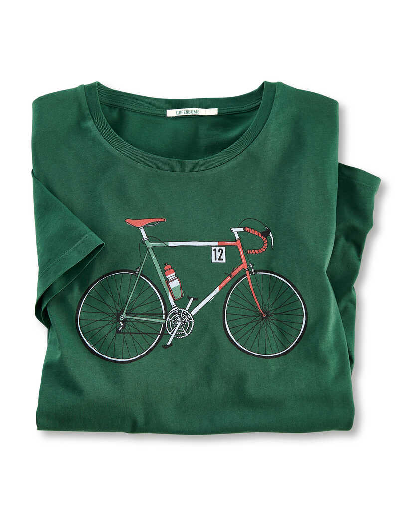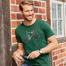 'Fair & Organic' - was viele Labels gerne machen würden, ist bei der Modemarke Greenbomb schon selbstverständlich! Das GOTS-zertifizierte (Global Organic Textile Standard) Unternehmen vereint nachhaltige Mode und lässiges Design. Wie bei diesem coolen T-Shirt Uptown Wheel, auf dem ein Bicycle-Print für sportives Flair sorgt. Auch die Jersey-Qualität aus bester Bio-Baumwolle ist schön fest und trotzdem herrlich weich auf der Haut. Moderne, gerade Passform mit Rundhals (Modern Fit). Länge ca. 75 cm. Farbe: Racing Green. Original Greenbomb.