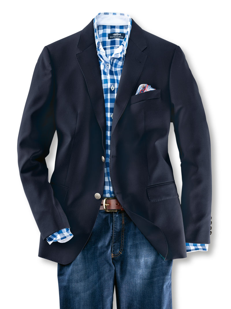 Den klassischen, dunkelblauen Club-Blazer aus feiner 'Super 100'-Schurwolle gibt es in zwei verschiedenen Passformen: den etwas kürzeren und schlankeren Schnitt mit blauem Futter (Modern Fit, Länge ca. 75 cm in Gr. 52) und die klassische Form mit grünem Futter (Länge ca. 78 cm in Gr. 52). Das Wolltuch verspricht allerhöchsten Tragekomfort. Es ist leicht, fein und weich im Griff und gibt dem Zwei-Knopf-Blazer eine tolle Optik. Perfekte Verarbeitung und mit unverzichtbaren Details wie soften Einlagen, edler Handstichkante, silberfarbenen Metallknöpfen, zwei doppelt paspelierten Pattentaschen sowie zwei Seitenschlitzen im Rücken. Vier Innentaschen (davon eine mit Knopf). Original Wellington of Bilmore. Original Wellington of Bilmore.
