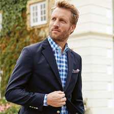 • Regular-Fit-Passform mit zwei Seitenschlitzen im Rücken