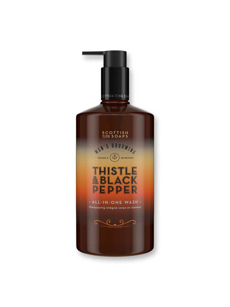 Einfach praktisch und angenehm im Gebrauch ist dieses hautsympathische und schonend reinigende Duschgel in der stylischen Pumpflasche von Scottish Fine Soaps. Schwarzer Pfeffer und Distel (Thistle) als Basis mit Nuancen von Amber, Pinie und Sandelholz geben dem Duft des Duschgels seinen maskulinen, urwüchsig schottischen Charakter. Mit dem Inhalt von 500 ml (!) kommt man lange aus. Original The Scottish Fine Soaps.