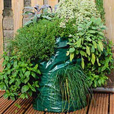 In England sind Pflanzsäcke sehr beliebt, denn Sie benötigen keinen Garten, um Ihre eigenen Kräuter zu ernten! Mit diesem Pflanzsack gelingt Ihnen die Aufzucht auf kleinstem Raum, sogar auf dem Balkon! Der Pflanzsack wird mit ca. 40 Litern Pflanzerde auf eine Schicht Kieselsteine oder ähnliches gefüllt. Die Pflanzen werden dann sowohl in die 8 Pflanzlöcher als auch obenauf eingesetzt. Mithilfe der seitlichen Tragegriffe können sie den Pflanzsack bei Bedarf drehen, damit jede Seite genug Licht bekommt. So können Sie fortlaufend frische Kräuter ernten. Frisch auf den Tisch ein wahrer Genuss! Größe: 45 x 35 cm. Immer wieder verwendbar. Aus robustem Kunststoffgewebe (Mit ausführlicher deutscher Anleitung, ohne Saatgut und Pflanzerde), Original Select IP, Chesterfield.