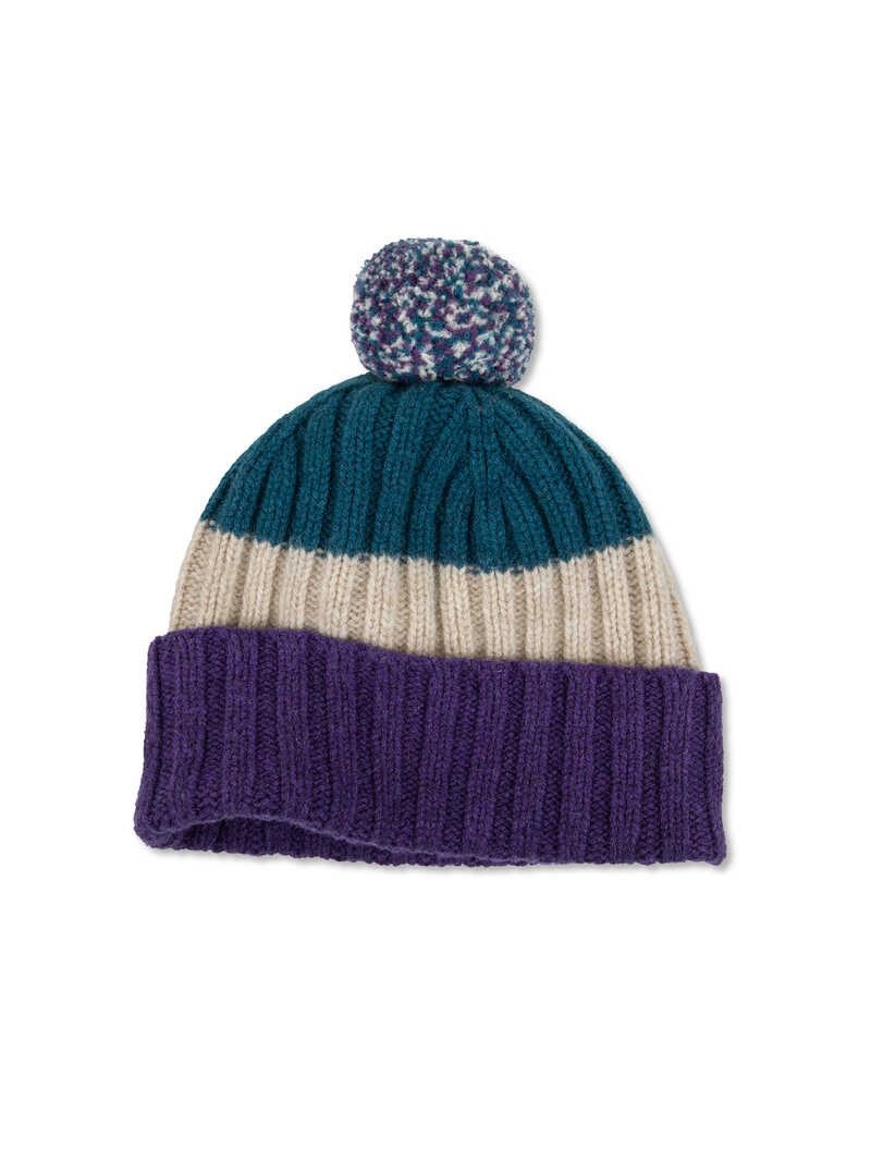 Mit ihrem Farbmix aus Petrol, Beige mit Navy und ihrem zweifarbigen Bommel sorgt diese Mütze sofort für gute Laune. Sie ist aus hochwertigem, kuschel-warmem Schurwoll-Rippenstrick, eine Spezialität des schottischen Stricklabels Robert Mackie. Das Unternehmen steht bereits seit 1845 für einzigartige Produkte und hervorragende Qualität. Farbe: Petrol-Beige-Navy. Original Robert Mackie. Made in Scotland.