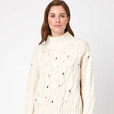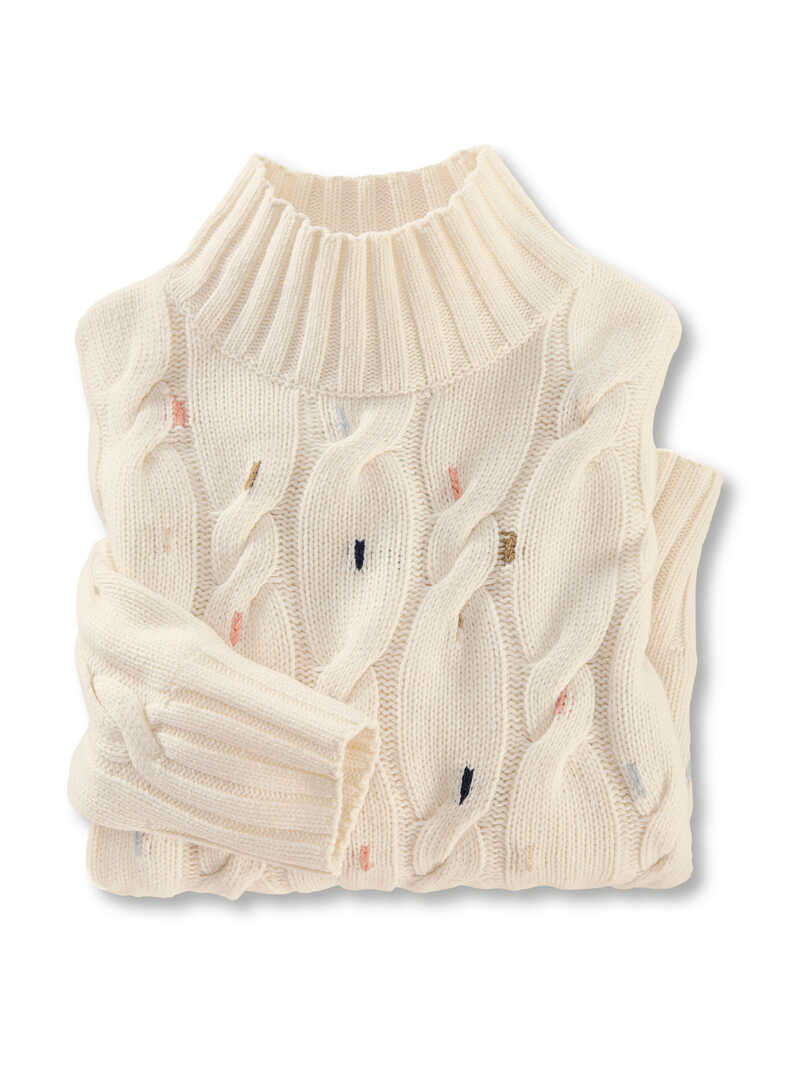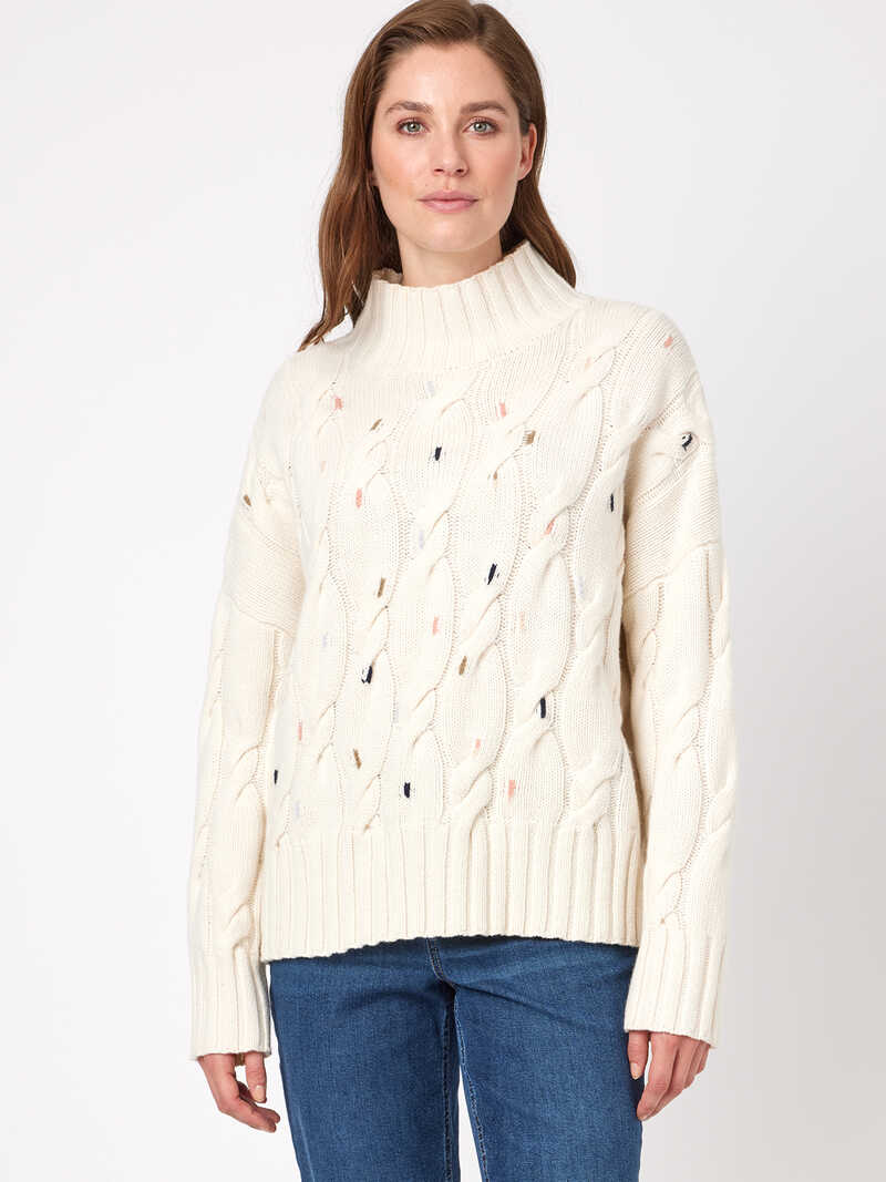 Ein Oversized-Schnitt, grob gestricktes Zopfmuster und zartes Wollweiß sind die Hauptzutaten dieses lässigen Barbour-Pullovers! Kleine Farbtupfer in Lachsrosa, Oliv und Blau ergänzen das Zopfmuster aufs Schönste. Die Mischung ist besonders smart: Durch den hohen Wollanteil herrlich wärmend, das Polyamid macht den Pulli unempfindlich und formbeständig. Mit überschnittenen Schultern, hohem Stehkragen, breiten Bündchen an Ärmeln und Saum. Modisch, weite Passform (Modern Fit) - fällt groß aus. Länge ca. 64 cm. Farbe: Wollweiß. Original Barbour.